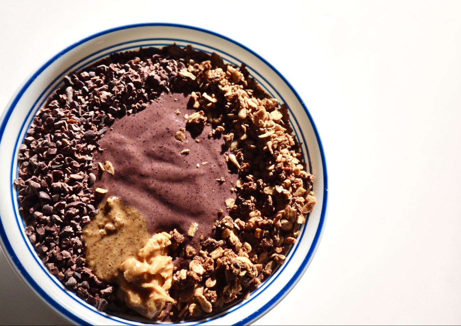 - Pour smoothie mixture into a deep bowl and adorn with your favorite toppings. My favorite are cacao nibs, crunchy unsweetened nut butter, and homemade granola.